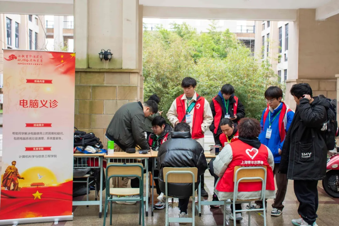 计算机学院志愿者队开设了“电脑义诊”摊位,帮助同学解决电脑使用上的困难和疑问。