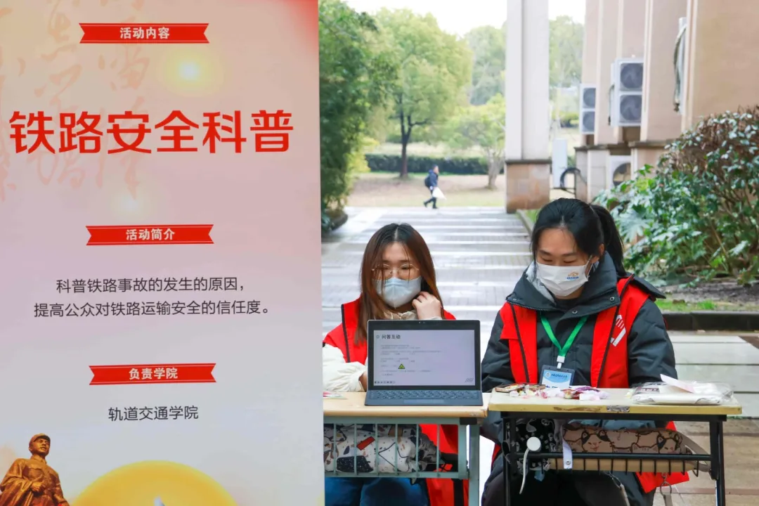 轨交学院志愿者队开展“铁路安全科普”活动,科普铁路事故的成因,提高公众对铁路运输安全的信任度。