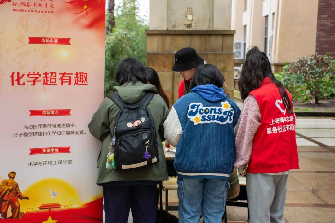 在第61个全国学雷锋纪念日来临之际,校团委启动“七秩芳华传薪火,砥砺奋进向未来”2024年学雷锋志愿服务主题月活动。3月5日中午,一场充满温暖的志愿服务主题嘉年华在奉贤校区第二教学楼一楼中庭举行。