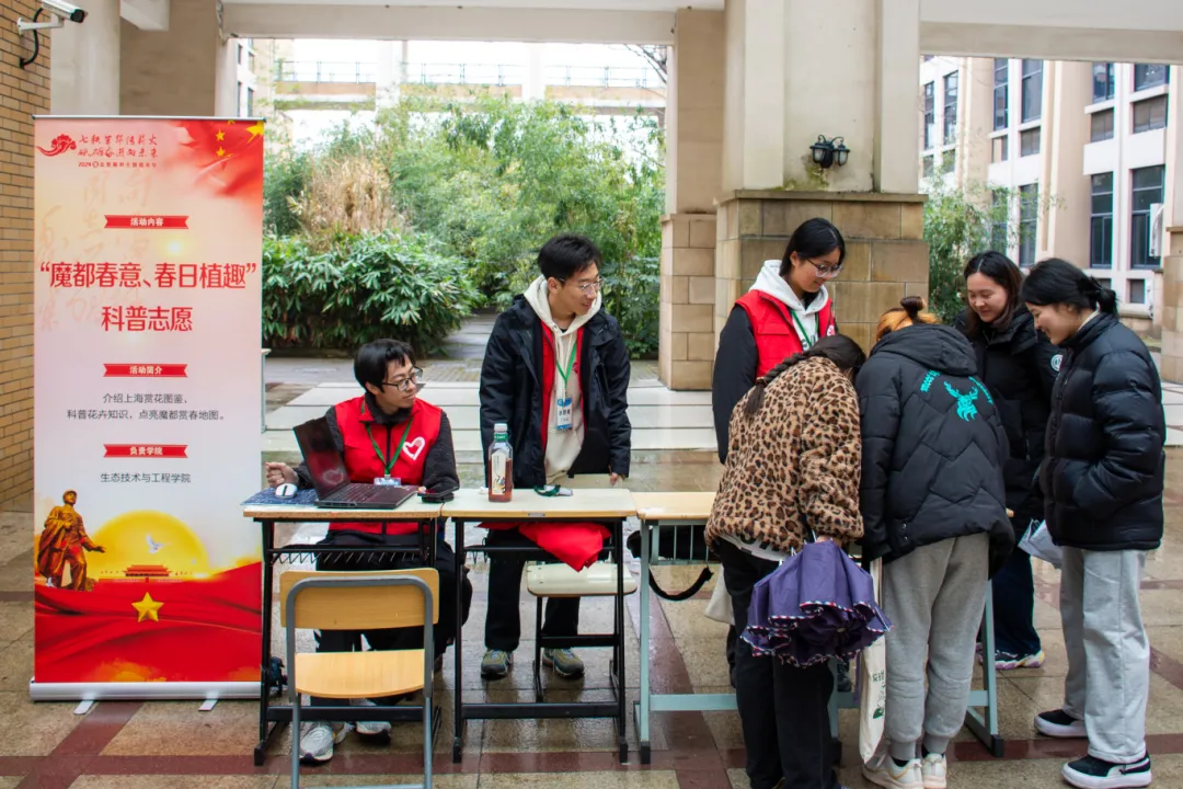 生态学院志愿者队通过“魔都春意、春日植趣”志愿科普活动,向同学们介绍上海赏花图鉴,科普花卉知识。