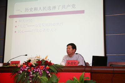 同济大学博士生导师李占才教授语言风趣幽默,采用了大量的历史史料,以一个坚定的马克思主义学者的身份,结合对“七一”讲话的充分阐释,用科学理性的分析方法,充分阐述了为什么人民选择了中国共产党,中国共产党为什么会带领中国人民完成民族解放、国家独立和国家富强、人民富裕的两大历史课题的必然性。报告精彩生动,与会干部听后深受启发。