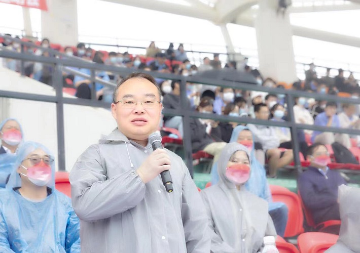 郭庆松宣布“上海应用技术大学第七届(总二十二届)运动会开幕”,激励同学们勇担民族之使命,肩负国家之责任,以青春之我努力拼搏,追求卓越、不断突破,努力成为新时代德智体美劳全面发展的社会主义建设者和接班人。