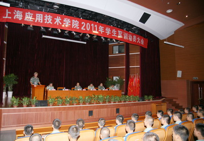 8月14日上午9:00,我校2011年学生军训动员大会在奉贤校区学生活动中心举行,标志着军训正式拉开序幕。校领导十分重视,校党委书记祁学银专程到校武装部和军训指挥部看望并提要求;校党委副书记、副院长、校军训领导工作小组组长康年与军训团团长唐兵出席军训动员大会;校党委副书记宋敏娟专程到食堂查看伙食供应情况。