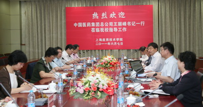 6月7日上午,中国医药集团总公司党委书记、副董事长王丽峰一行6人前来我校考察,交流洽谈校企合作事宜并在考察座谈会上讲话。校党委书记祁学银主持考察座谈会并致欢迎词。校长卢冠忠介绍学校基本情况。中国医药集团总公司副总经理、中国医药工业研究总院院长周斌介绍中国医药集团基本情况。