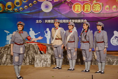 6月8日,作为纪念建党90周年系列活动之一,学校邀请上海戏剧学院师生在奉贤校区演出小剧场现代京剧《马蹄声碎》,这也是本学期第4次“高雅艺术进校园”专场演出和第5次“艺伴学涯——月月演”活动。