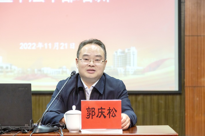 郭庆松强调,学习宣传贯彻党的二十大精神是当前和今后一个时期的首要政治任务。我们要切实掀起学习宣传贯彻的热潮,把思想和行动统一到党的二十大精神上来,把力量凝聚到党的二十大确定的各项任务上来,坚持以干事创业为导向,瞄定目标,精准发力,增强干部队伍的履职能力,激发各级党组织和广大党员斗争精神,推动新时代学校教育事业高质量发展。
