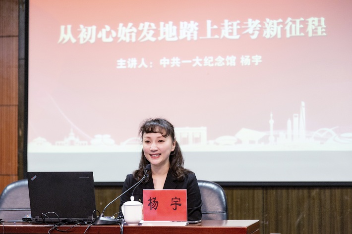 “从上海石库门到北京天安门,从讲述党代会到成为党代表,这是对一个来自党的诞生地、初心始发地、伟大建党精神孕育地的工作人员最深的嘱托和最好的肯定。”学习培训会上,杨宇以《从初心始发地踏上赶考新征程》为题,从“感受非凡伟力”“凝聚奋进力量”“书写时代荣光”三个篇章,结合亲身经历,回顾了参加党的二十大的难忘经历。她以“速览”的方式介绍了党的二十大的概况和大会报告要点,用“九个数字”解读了党的二十大报告的核心要义,还深情并茂地讲述了从10月初就开始的会前调研到“党代表通道”回答新闻媒体采访有关内容的精心思考和准备过程,为大家呈现了参与“党代表通道”的台前幕后故事。