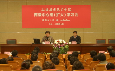 4月7日下午,上海工程技术大学校长汪泓教授应邀为我校两级中心组(扩大)学习会作题为《培养应用型创新人才,打造优秀工程师摇篮,创建现代化特色大学》的专题报告。校党委书记祁学银主持学习会。校领导康年、宋敏娟、祝永康、陈东辉、叶银忠出席学习会。