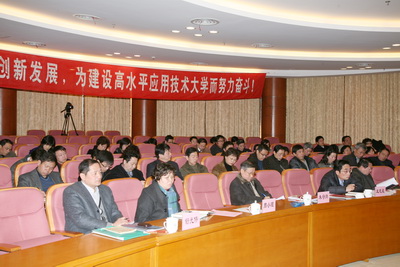 会议号召,全校广大干部、全体党员和师生员工要坚持以科学发展观为指导,坚定目标,追求卓越,以高度的责任感和使命感,振奋精神,立足建设,创新发展,狠抓落实,为建设高水平应用技术大学而努力奋斗!