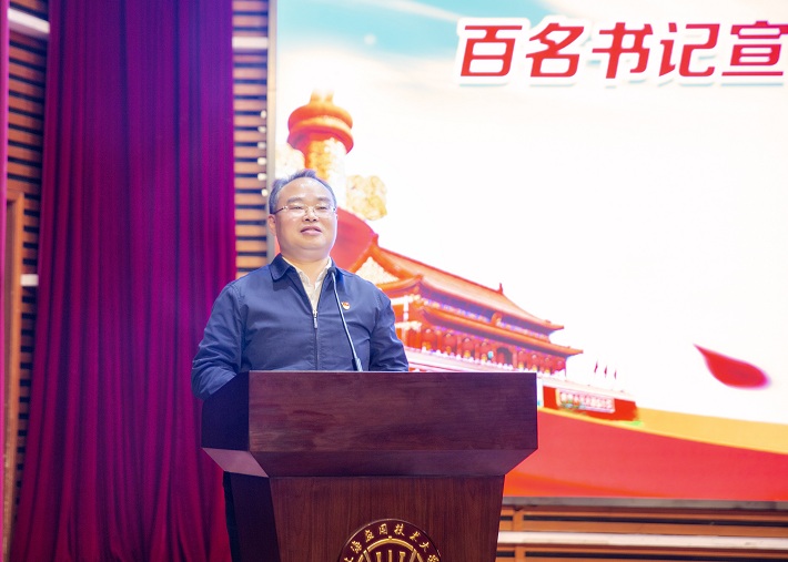 为迅速兴起全校深入学习宣传贯彻党的二十大精神热潮,11月7日,学校党委举行“踔厉奋发向未来、勇毅前行谱新篇——百名书记宣讲党的二十大精神启动仪式”,校党委书记郭庆松作动员讲话,校党委副书记、校长柯勤飞主持。