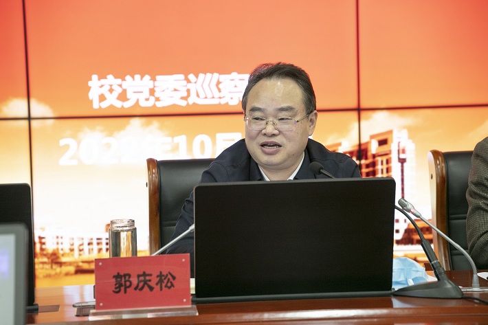 郭庆松对围绕“怎么看、怎么办、怎么深”三个方面,对做好第四届党委第二轮巡察工作提出三点要求:一是坚持政治巡察定位,以更高的站位认识巡察。党的二十大报告提出了一系列新思路新战略新举措,可谓高屋建瓴、统揽全局,内涵丰富、博大精深,这是做好巡察工作的根本遵循。我们要紧扣政治监督职责,发挥巡察系统优势和综合监督作用;立足政治担当使命,通过政治巡察严明党的政治纪律和政治规矩。二是紧扣巡察单位特点,以更准的精度开展巡察。聚焦巡察重点,精准深挖细查。坚持问题导向,确保巡察实效。按照“四个落实”和“五个持续”总体要求,重点围绕“四个紧盯”,结合学校实际情况,理解和把握好巡察重点,确定巡察关注的重点人、重点事、重点问题,确实履行好政治巡察责任。三是完善上下联动格局,以更实的举措深化巡察。加强组织领导,健全工作机制,注重贯通合力,推动巡察深化。切实通过校内政治巡察,把学校全面从严治党向纵深推进、向基层延伸,贯通纪检监察监督、审计监督、财务监督、师生监督等监督合力,真正破解“上面九级风浪,下面纹丝不动”的难题,充分发挥校内巡察监督的“利剑”作用。郭庆松还就学校党委第一轮巡察中发现的带有普遍性的问题,提出了自查整改要求。