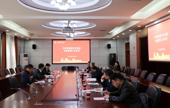 为进一步深化纪检监察体制改革,增进高校纪检监察工作交流,3月28日,市纪委监委片区高校纪检监察工作会议在我校召开。市纪委监委第四监督检查室、华东政法大学、上海师范大学、上海对外经贸大学、上海工程技术大学、上海政法学院、上海商学院、上海旅游高等专科学校、上海应用技术大学相关领导出席会议。市纪委监委第四监督检查室副主任白稼铭主持会议并讲话,校党委副书记、纪委书记、监察专员李健出席会议并致辞。