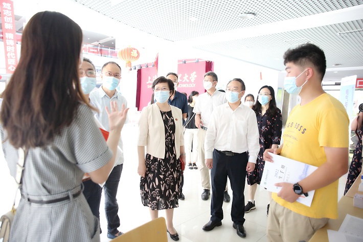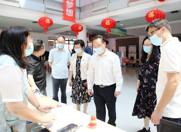 校党委书记郭庆松,校长柯勤飞,校党委副书记、副校长王瑛,副校长毛祥东来到大学生活动中心新生接待点,看望前来报到的研究生同学,与新生亲切交谈,询问新生路途是否顺利,手续办理是否方便等,并慰问服务在迎新一线的各院系和部处工作人员。校长办公室、党委学工部、研究生院等相关部门负责人陪同。