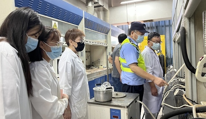 通过检查,发现部分实验室还存在学生进实验室未穿实验服、管控类试剂使用记录不规范、实验废液处理不及时等隐患,检查组当即要求相关实验室即时整改,同时要求各学院举一反三,立查立纠,切实加强实验室安全工作,遵守实验室安全规范,保障学校教学科研环境的安全。