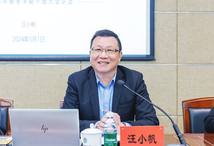汪小帆围绕上海高校党政负责干部会议精神,结合实际,对学校2024年重点工作进行了部署。一是以新一轮综合改革开启学校发展新征程,持续探索具有上应特色的教育教学模式改革,推动学校事业创新发展。二是以评促建、以评促改、以评促强,着力提升教育教学质量,推动人才培养改革,优化调整专业结构布局,促进毕业生高质量充分就业。三是以高地大建设转段升级促进学科特色发展,以提升人才自主培养质量和创新策源能力为核心目标,推动“高地大”二期建设实现“转段升级”,切实提高学校的服务贡献水平。四是强化资源保障和数字化转型,助推高质量发展,聚焦关键堵点痛点,强化资产增效,优化资源共享,构建高水平财务保障体系,筑牢安全防线,以数字化变革引领大学治理体系重塑升级。