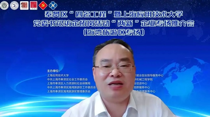 此次专场推介会由我校、上海市奉贤区社会工作党委、上海市奉贤区人力资源和社会保障局、中共上海市奉贤区海湾旅游区工作委员会、上海市奉贤区海湾旅游区管理委员会联合主办。奉贤区委组织部两新组织党建科、海湾旅游区党工委、“两新”企业代表,我校党委学工部、机械学院、人文学院负责同志和师生代表参加。