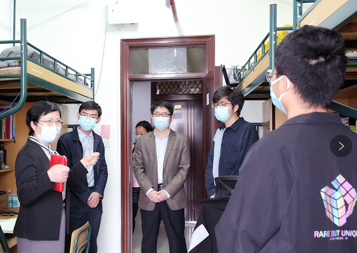 为进一步从严从实从细筑牢校园疫情防控安全屏障,高度重视和关心关爱在校学生身心健康与学习生活,5月10日,校党委副书记、校长柯勤飞深入奉贤校区学生宿舍,查看疫情防控措施落实情况,倾听在校同学意见建议,为同学们送去校领导的关心和问候。