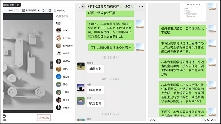 导师们根据各门课程特点合理选择授课方式,讨论式、启发式、沉浸式等教学方法广泛运用,案例讲解、文献研讨、课程小论文等有机组合,自学与讲授相互融合,探讨式研究生线上教育教学模式正有序实施。