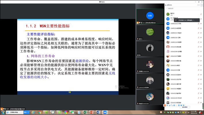 王辉老师《传感器网络原理与应用》将最新理论研究和技术应用融入教学,注重从课程知识点的研究内容、研究热点、存在问题等方面引导学生勤于思考,鼓励学生追踪研究进展,将课程学习与自身研究相结合;指导学生通过阅读国内外高水平研究论文和专业网站等途径进行学习归纳总结,促进学生科研素养的提升。