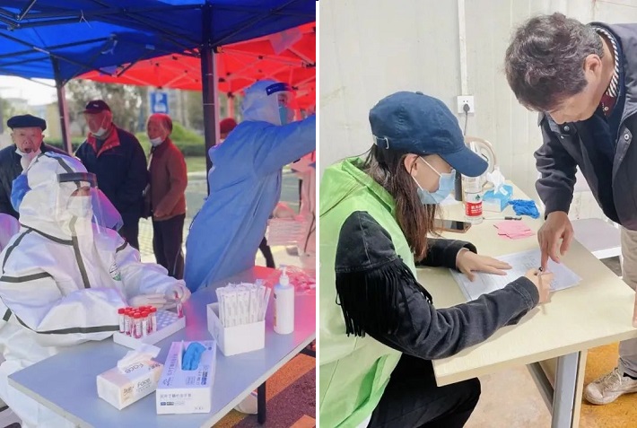随后,南翔镇开始封锁并实施全员核酸检测,金心嫣立即又前往社区报到,开启新一轮的志愿服务。为年长居民申请打印二维码、扫描采样码、维护现场秩序以及辅助采样……,从大白到小蓝,她的初心未变,更体会到党员的责任与担当。