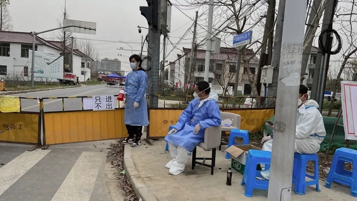 家住嘉定区南翔镇的外国语学院金心嫣,在了解到邻镇疫情严峻时立即报名了志愿者,无论晴天雨天,从白天到黑夜,她在7900名居民的住宅区奔波、坚守。该住宅区有3例确诊,防护工作非常重要。口罩勒得脸生疼,雨水和雾气附上了面罩,防护服沾上了泥土,她依然仔细叮嘱每一位居民有序排队,打开采样二维码,一次次数清人数。
