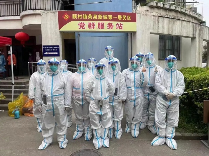 最近上海天气变幻无常,当气温达到20多度,她在二层隔离防护服旳包裹下闷热异常,里面衣服一次次湿透。下雨天,她又穿着雨披和防护服帮助有困难的居民们。谈怡莹说,“心往一处想,劲往一处使,全力守护上海的安全有序,我们一定会胜利!”