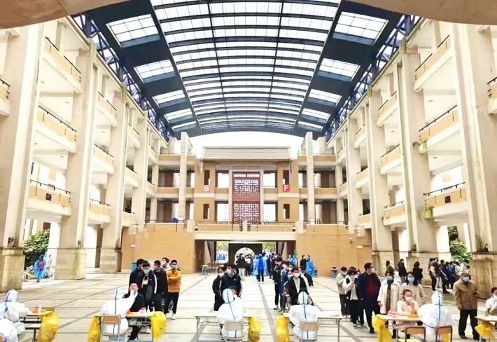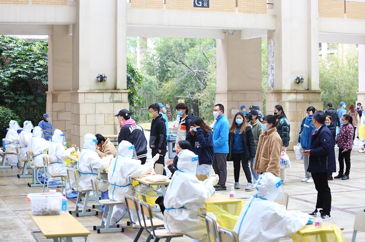 连日来,学校核酸检测工作高效进行、秩序井然,已完成第一轮、第二轮、第三轮核酸检测,在第二教学楼、大学生活动中心等检测点,师生们整齐排队,安静有序。医护人员全力投入紧张的检测工作中,广大师生密切配合。身份验证、咽拭采样、耐心等待,医护人员和师生员工用行动配合防疫,用理解传递友爱。