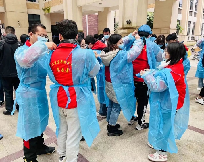 志愿者冲锋在前,广大学生志愿者火速集结,奔赴各自工作岗位。核酸检测、后勤保障、安全排查……处处都活跃着志愿者红马甲的身影。“志愿红”在的地方,就有温暖和力量;他们默默奉献,全力以赴、任劳任怨,共同守护上应校园,用行动和担当诠释了当代大学生的风采。