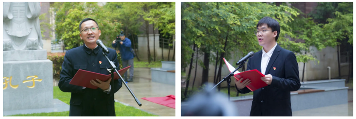 人文学院院长张向前教授,城市建设与安全工程学院学生陈丹峰分别作为教师和学生代表在仪式上发言,表达对先贤的崇敬之情及对传承弘扬中华优秀传统文化的理解和感悟。