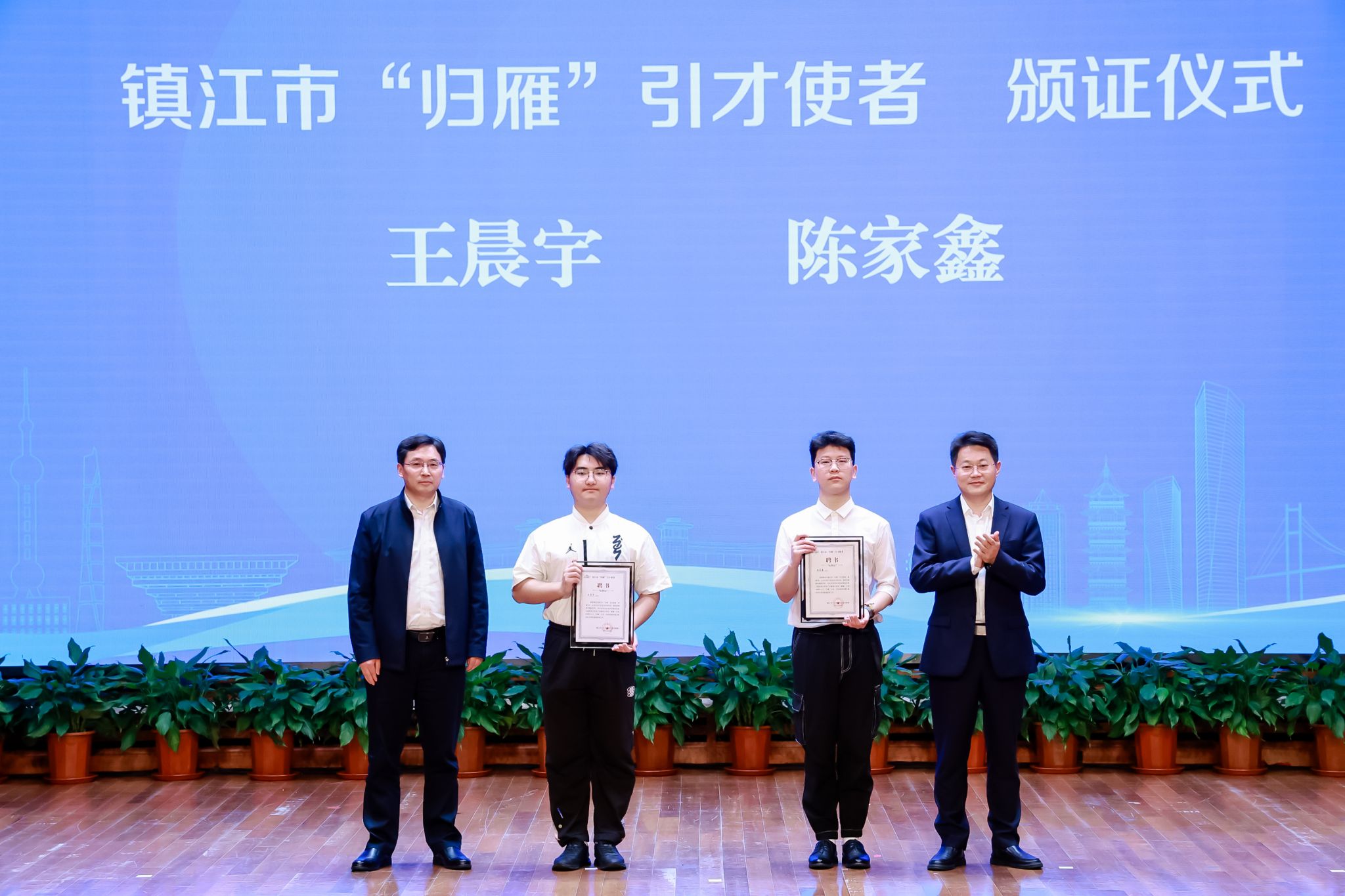 推介会上,上海应用技术大学“镇江市人才工作站”揭牌,“上海应用技术大学大学生就业实习实践基地”授牌,两位镇江籍上应学子获聘镇江市“归雁”引才使者。