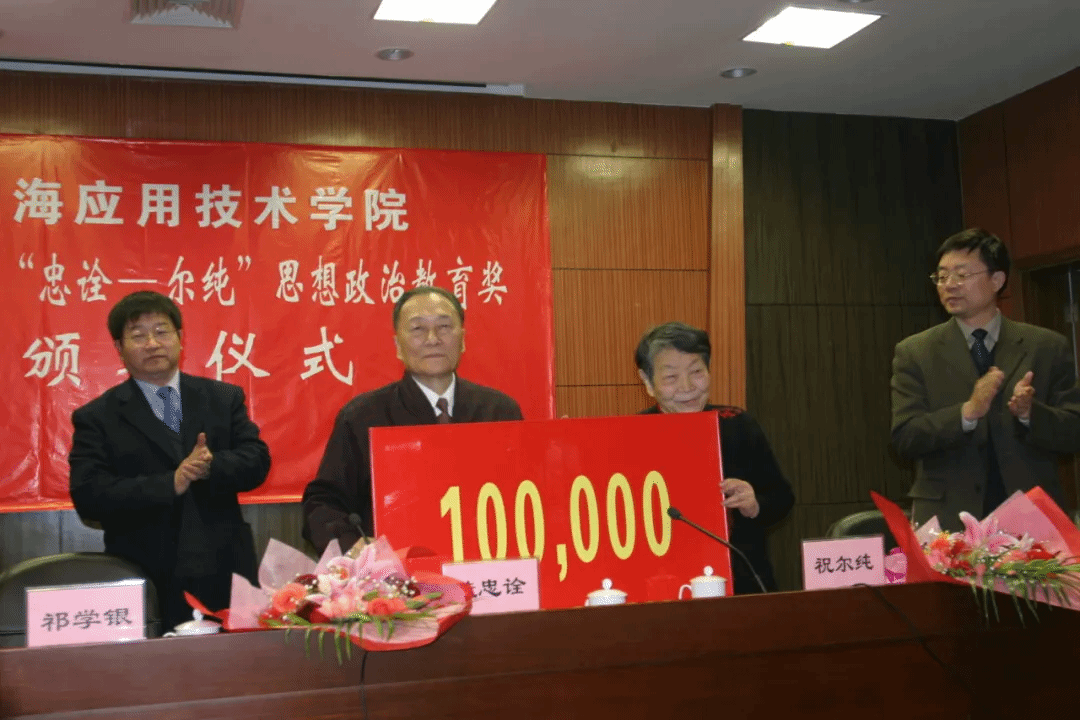2003年,他们又把国家补给他们的房贴再加上省吃俭用存下的积蓄凑足10万元,捐给学校设立“诚信生活助学贷款”,以无息贷款方式资助家庭经济困难而又勤奋好学的学生。迄今,上海应用技术大学“忠诠一尔纯”思想政治教育奖已颁发了第二十二届,近800名师生受到表彰。“诚信生活助学贷款”增添了社会捐款,继续这份爱的接力。