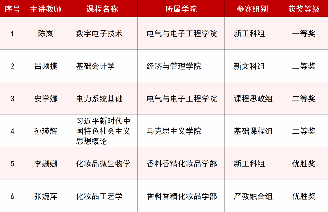 近日,上海市教育委员会公布了第四届上海市高校教师教学创新大赛获奖名单。上海应用技术大学教师荣获一等奖1项、二等奖3项、优胜奖2项,总体获奖数量位居同类高校前列。