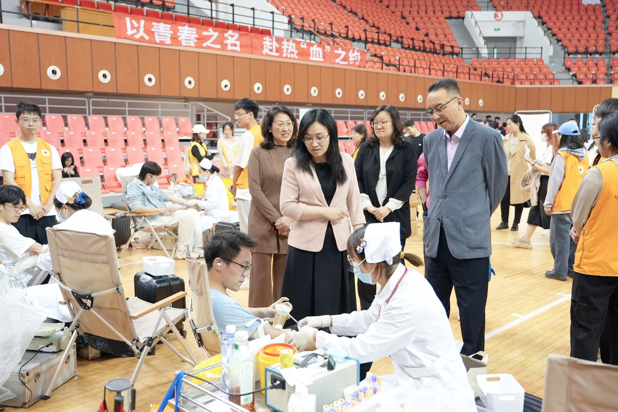 5月16日-21日,学校无偿献血工作顺利开展,来自全校各二级学院共计700余人次的本硕学生和教师积极参与上半年无偿献血工作。校党委副书记、副校长王瑛亲切看望献血师生,走访献血的各个环节,与献血学生亲切交谈。党委办公室、党委学生工作部、后勤保障与服务中心有关负责人陪同。