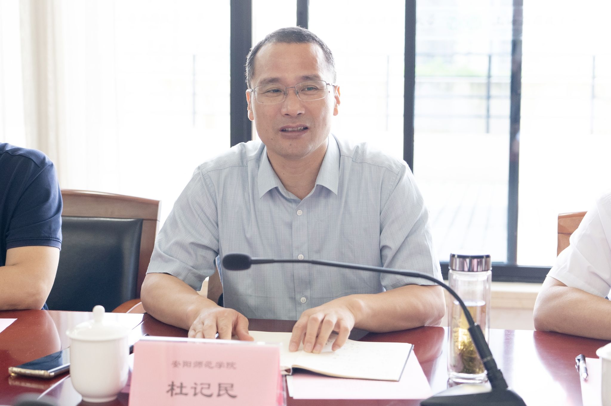 杜记民对学校的热情接待表示感谢,并介绍了安阳师范学院的发展历程,表示上海应用技术大学近年来发展迅速,希望通过此次交流,借鉴学校在专业布局和科学研究等方面的宝贵经验,学习我校在应用型大学高质量发展实践中的成功做法,共同推动两校在高等教育领域的创新与发展。
