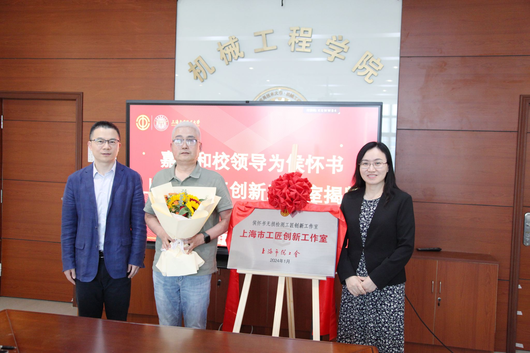 5月28日,上海市工匠创新工作室——“侯怀书无损检测工匠创新工作室”揭牌仪式在校举行,校党委副书记、副校长王瑛,上海市职工技协服务中心主任、书记竺敏出席,仪式由校工会常务副主席张淑梅主持。