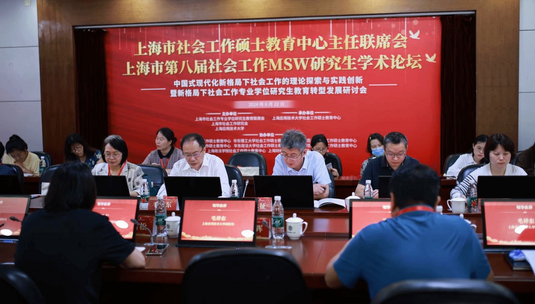 6月22日,由上海应用技术大学、上海市社会工作专业学位研究生教育联席会、上海市社会工作研究会联合主办的“2024年上海市MSW教育中心主任联席会议暨上海市第八届社会工作MSW研究生学术论坛”在徐汇校区举行。本次论坛旨在为师生共同探索中国式现代化新格局下社会工作的理论发展与实践创新提供交流平台,上海市社会工作专业学位研究生教育界同仁以及各校MSW研究生代表80余人齐聚一堂,深入探讨了新格局下社会工作专业学位研究生教育转型发展的热点问题和前沿议题。副校长毛祥东、中国社会工作教育协会副会长、上海市社会工作研究会会长何雪松、校研究生院院长房永征出席开幕式。人文学院党总支书记周文主持开幕式。