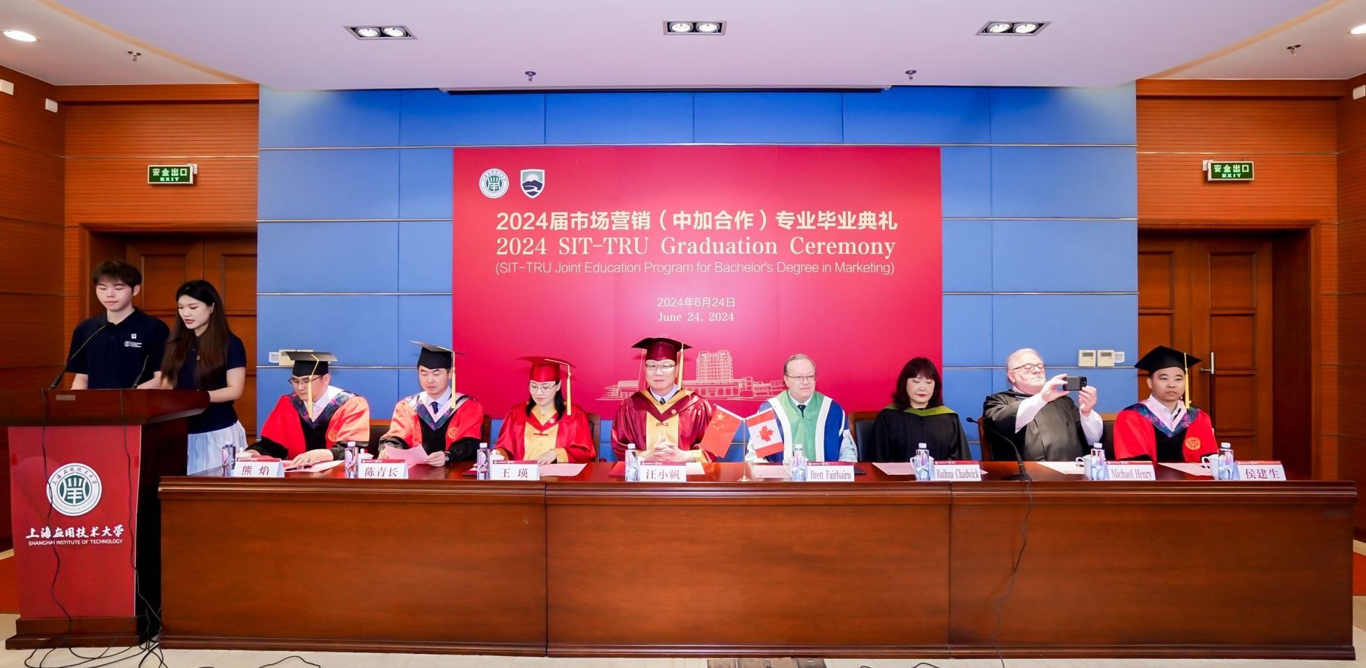 6月24日,学校举行2024届市场营销(中加合作)专业毕业典礼。上海应用技术大学校长汪小帆,校党委副书记、副校长王瑛,加拿大汤姆逊大学校长布雷特·费尔贝恩,副校长白桦出席典礼。国际交流处处长陈青长、经济与管理学院院长熊焰、经济与管理学院党委书记侯建生、汤姆逊大学工商管理与经济学院院长麦克·亨瑞参加仪式。