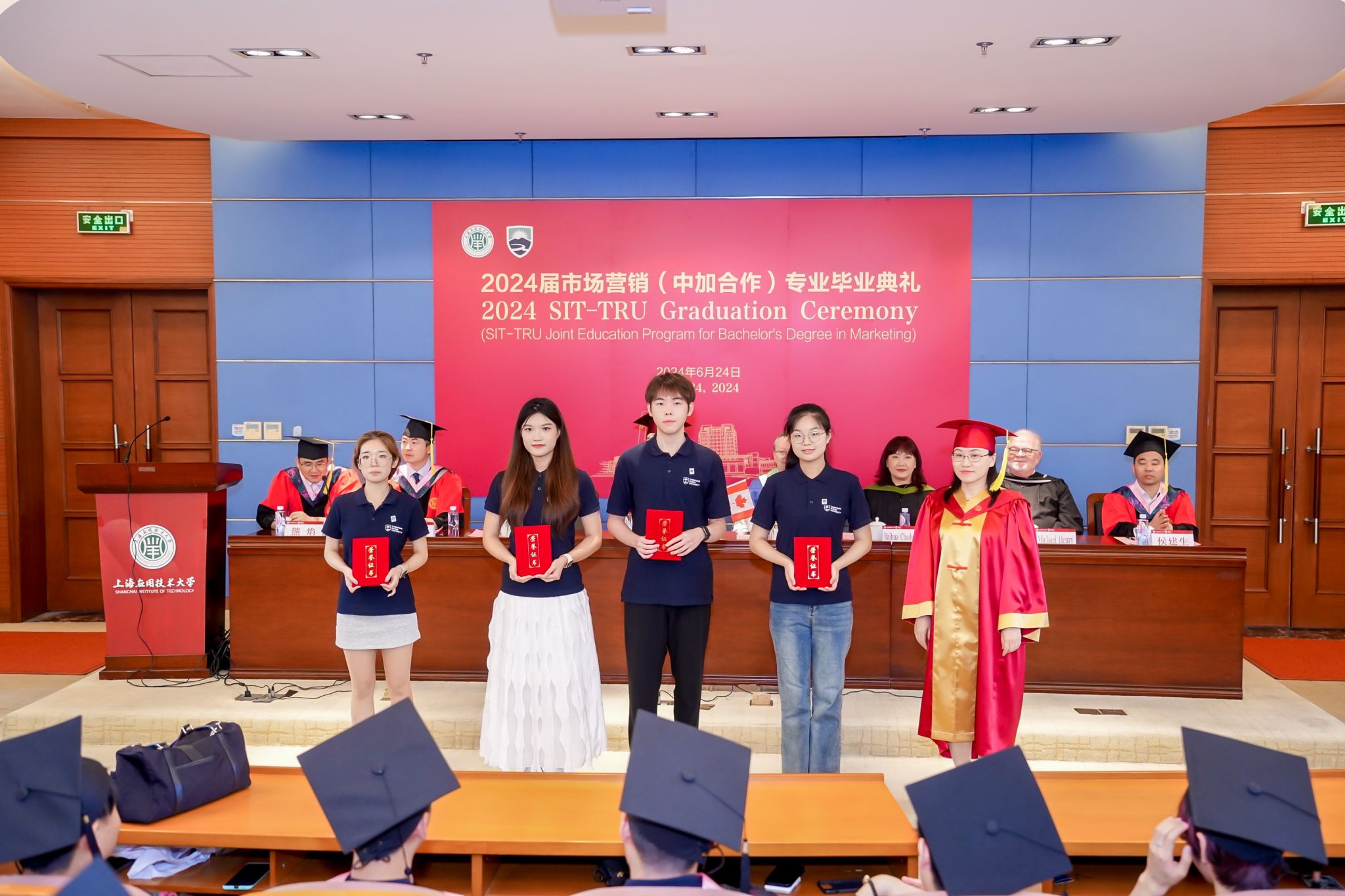 毕业典礼上宣读了上海市优秀毕业生、上海应用技术大学优秀毕业生名单、汤姆逊大学Top GPA和TRU Star毕业生名单并颁发荣誉证书。双方领导分别为毕业生颁发上海应用技术大学毕业证书和授予加拿大汤姆逊大学学位证书。