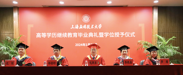 1月20日,上海应用技术大学2023年高等学历继续教育毕业典礼暨学位授予仪式在徐汇校区举行。副校长毛祥东出席并讲话,继续教育学院院长李晓晶、直属党支部书记毕劲松和教师代表、2023届毕业生代表和部分往届毕业生及亲属近300人参加典礼。继教学院副院长沈刚主持毕业典礼。