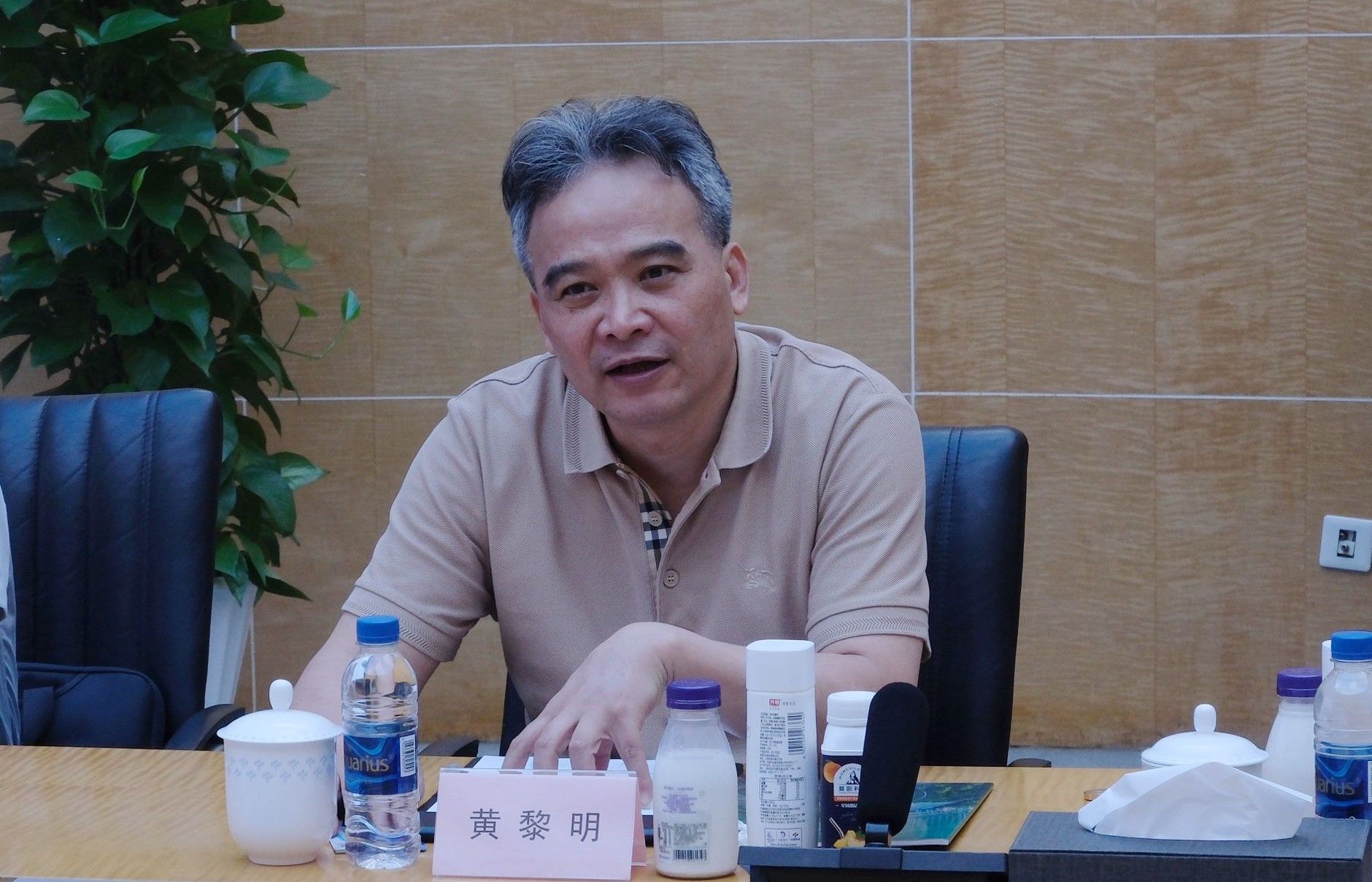 黄黎明对汪小帆一行来访交流表示热烈欢迎,回顾了自己在母校的求学历程,介绍了光明乳业的历史沿革、主营产品、人才建设、校企合作等情况。黄黎明表示,加强校企合作是国有企业的责任担当,光明乳业将积极在人才队伍建设、数字产业发展、科技创新、基础研究等方面强化与高校之间的交流合作,努力为我国食品行业发展的贡献智慧与力量。