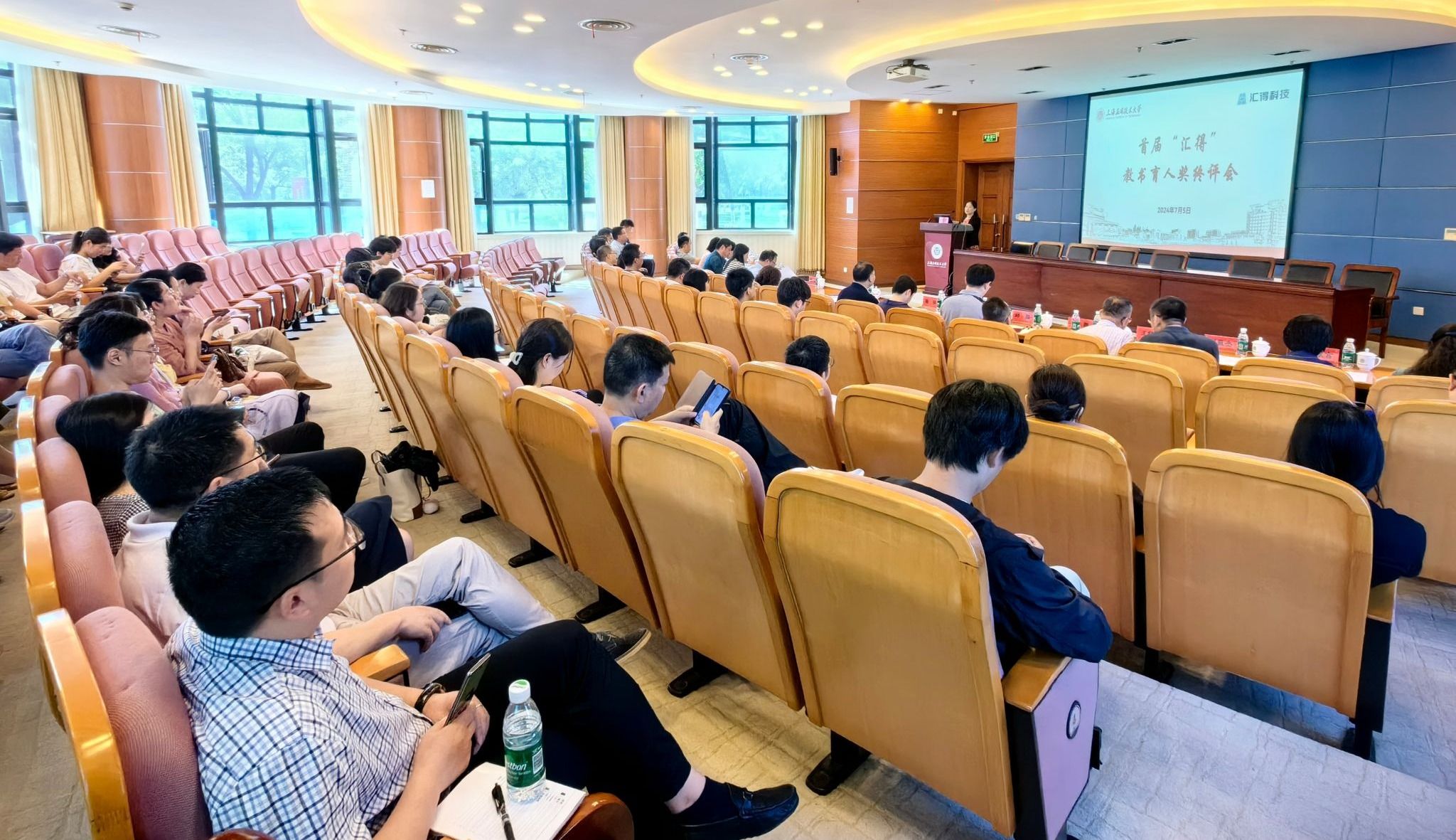 首届“汇得”教书育人奖于5月27日正式启动。经个人申报、学院(部)推荐和“汇得”教书育人奖初审委员会初审,最终有4位“教学名师”和8位“教学能手”进入终评会。终评会上,12位候选人通过现场答辩,展示了新时代上应教师潜心教书育人、默默耕耘奉献的精神风貌。