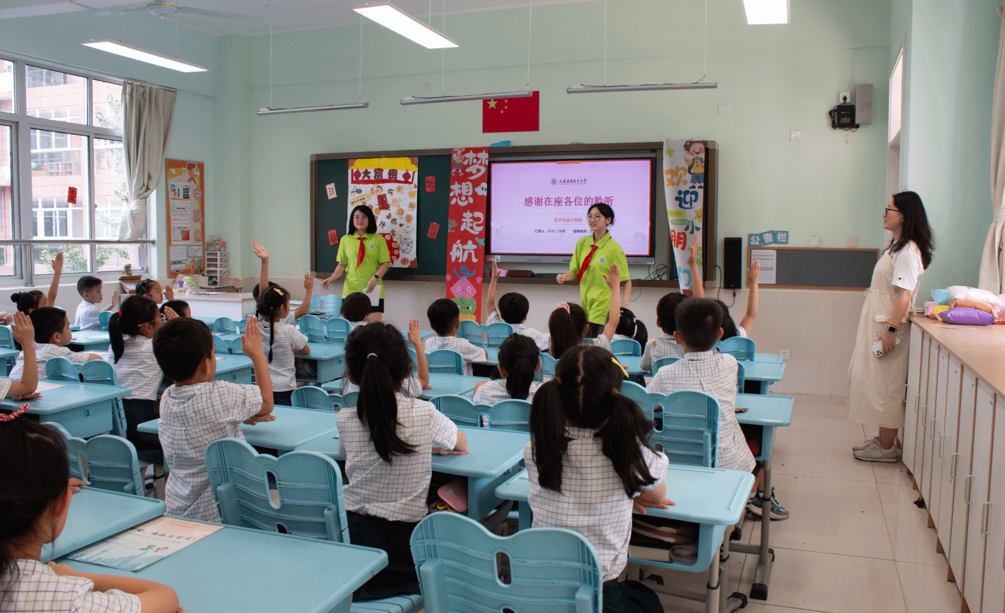 9月2日,我校马克思主义学院教师带领《上海城市精神与历史文化》课程组走进闵行区田园第二外国语实验小学“开学第一课”的课堂。