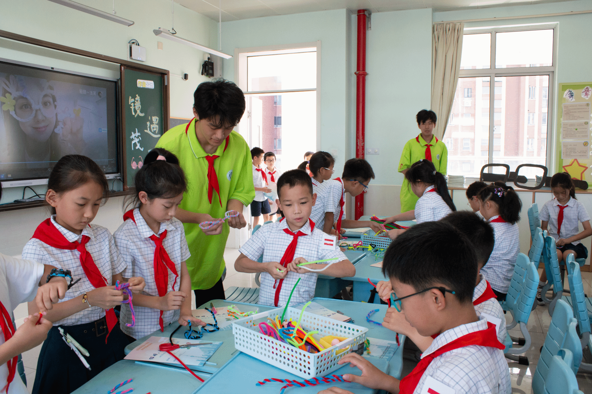 我校大学生们选取了24个上海老字号品牌,分别进入全校的24个班级,以30分钟主题班会为基本形式,由大学生为小学生们讲述那些老字号品牌的历史故事与价值传承。主题班会后,学校举办了“你好,海派老字号!”游园活动。学校将教室布置成24个上海老字号品牌馆,以游戏互动的形式推进了“体验式”德育课堂。