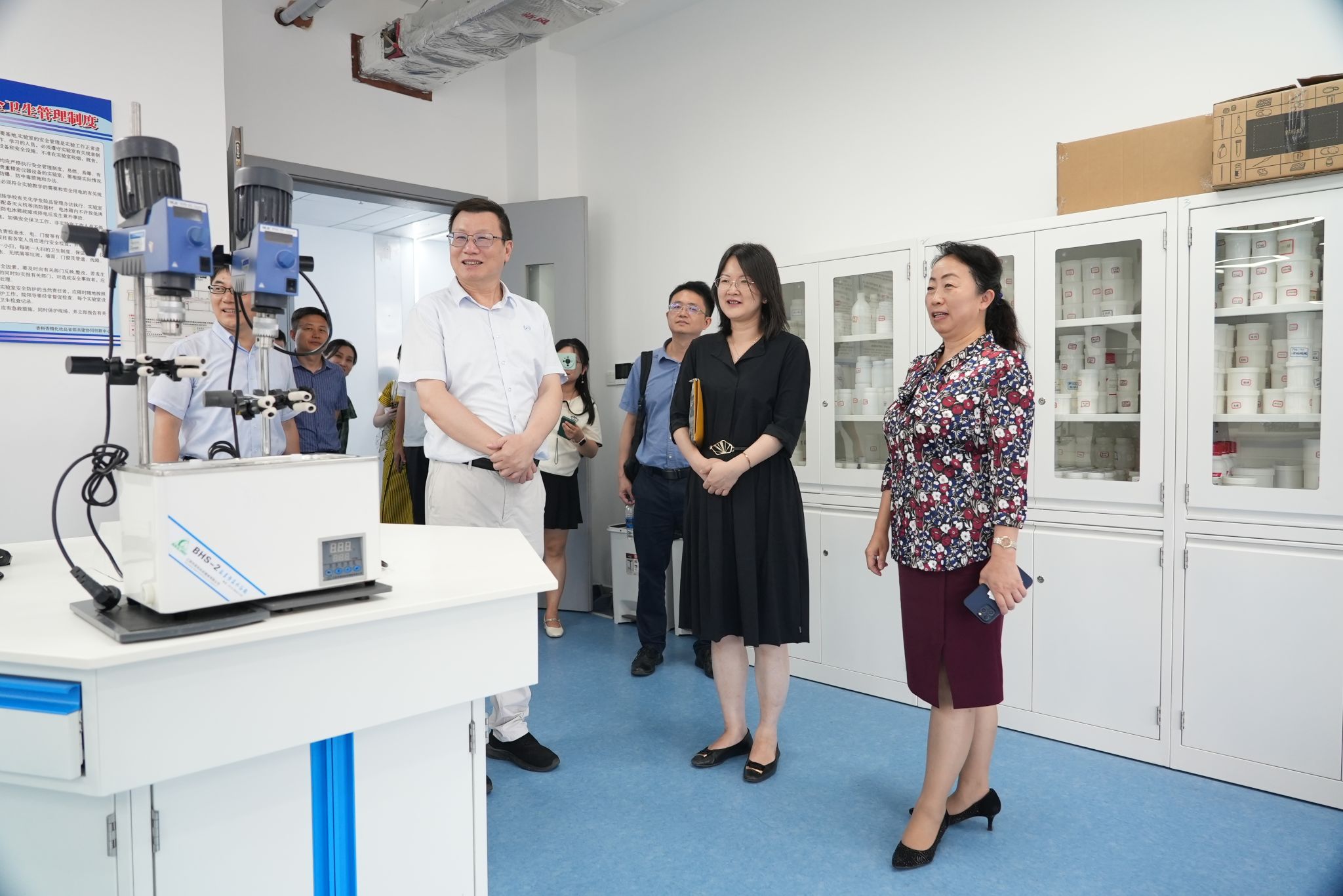 座谈会前,在汪小帆陪同下,陈石燕一行参观了我校校史馆,详细了解学校70载发展历程,随后参观了香料香精化妆品省部共建协同创新中心,边参观边交流,对我校产教融合创新发展表示赞许。