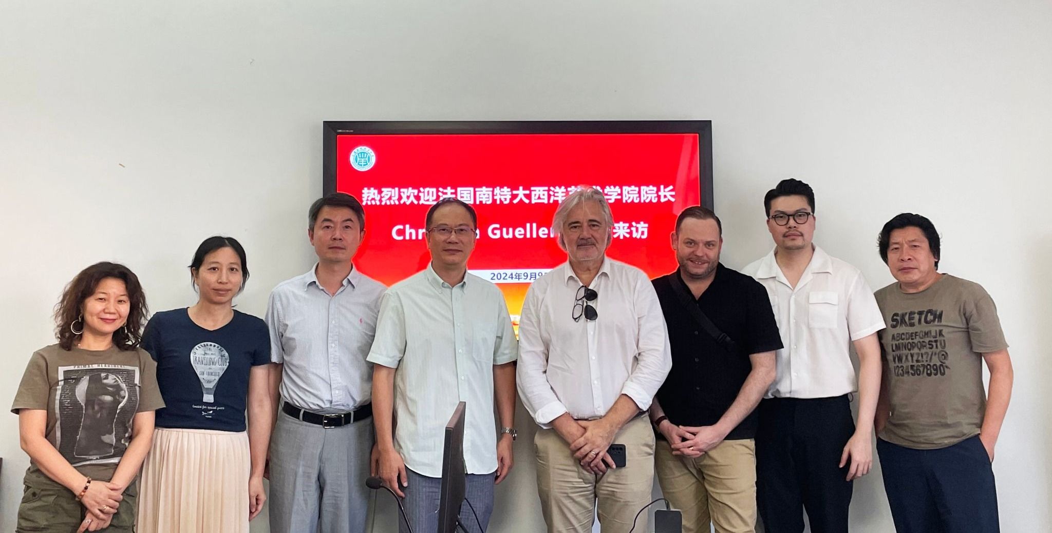 9月9日,法国南特大西洋艺术学院院长克斯帝安 .盖莱林(Christian Guellerin),法国法尚集团总经理马修(Matthieu),法尚集团Wesley一行到访我校艺术与设计学院。副校长、艺术学院院长(兼)毛祥东亲切接待,国际交流处处长陈青长,艺术院党总支副书记(主持工作)胡艺等参加会谈。