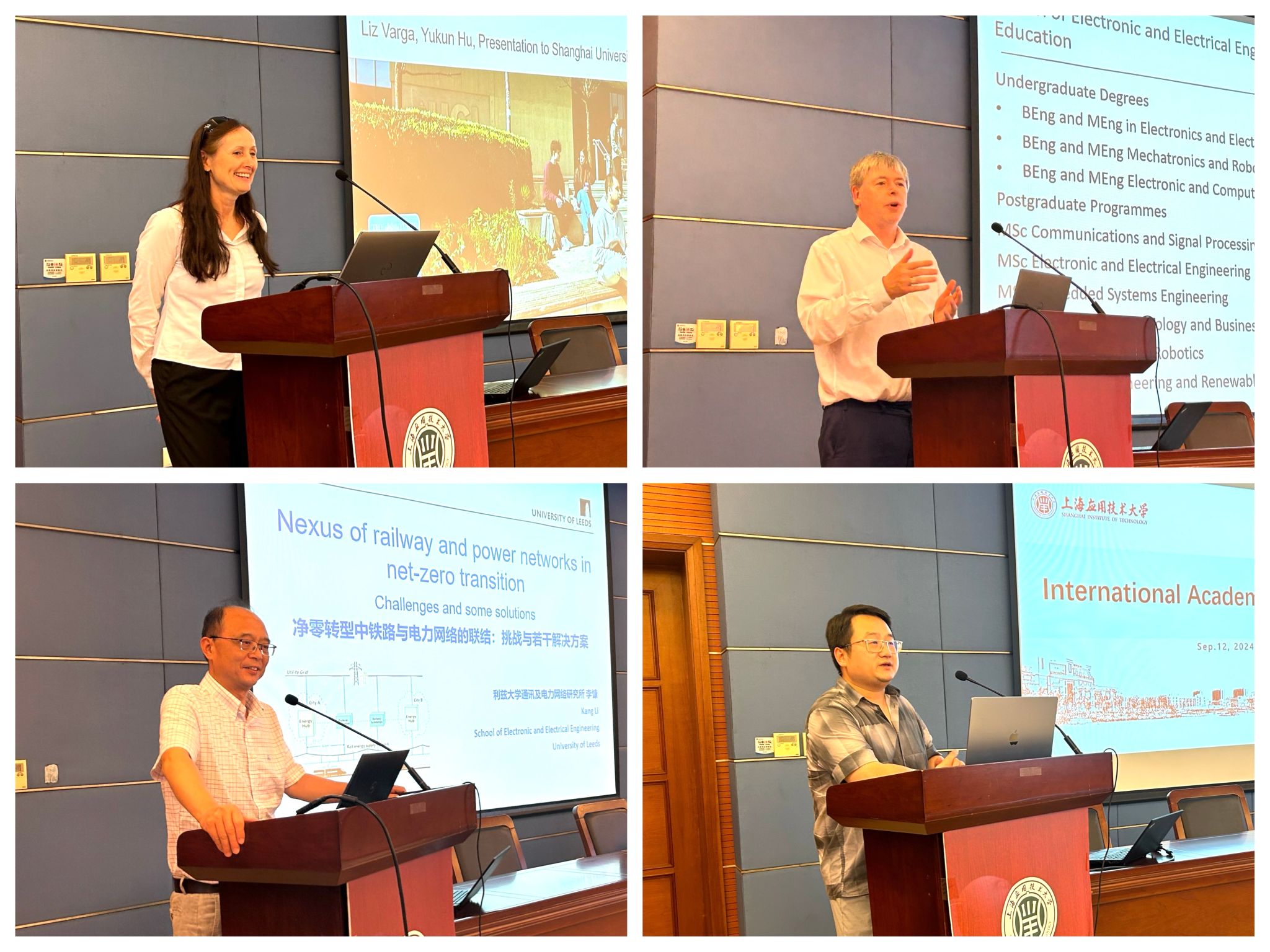 学术报告会由国际交流处处长陈青长主持,Liz Varga教授、Kevin Morris教授、李慷教授、胡玉坤副教授分别作学术报告。Liz Varga教授介绍了伦敦大学学院(UCL)的历史、优势学科专业以及在英国及世界大学中的地位。Kevin Morris教授介绍了利兹大学的历史、优势学科专业以及在英国及世界大学中的地位。李慷教授深入探讨了铁路与电力网络在实现净零排放转型过程中所面临的挑战,提出了一系列创新解决方案。胡玉坤博士介绍能源动力与复杂冶金过程建模、优化与控制方面的最新研究进展。