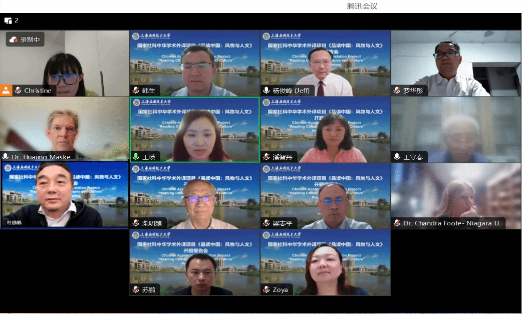 9月11日,由学校科学技术研究院组织、外国语学院协办的国家社科基金中华学术外译项目(《品读中国:风物与人文》)举办线上开题答辩会。该项目负责人是上海应用技术大学党委副书记、副校长王瑛教授。上海外国语大学高级翻译学院原院长柴明颎教授、中华书局学术著作出版中心主任罗华彤教授、上海应用技术大学马克思主义学院梁志平教授担任项目开题答辩专家。会议由项目组成员、大连外国语大学前原副校长杨俊峰教授主持。