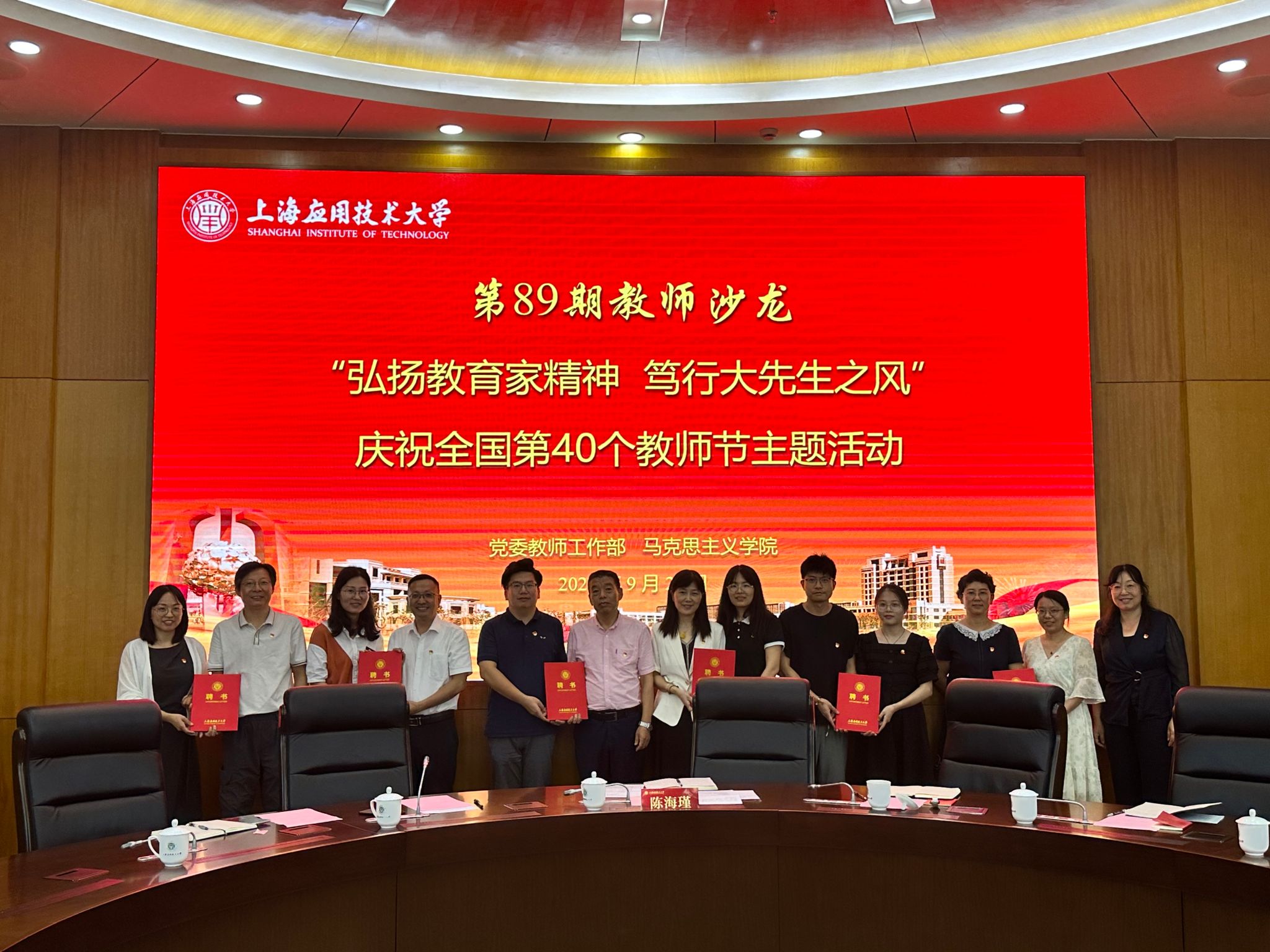 9月20日,学校举行“弘扬教育家精神 笃行大先生之风”暨庆祝全国第40个教师节系列主题活动召开。校党委副书记陈海瑾出席活动,马克思主义学院院长张向前、党委教师工作部副部长彭亚萍、马克思主义全体教师参加活动。会议由马克思主义学院直属党支部书记邱杰主持。