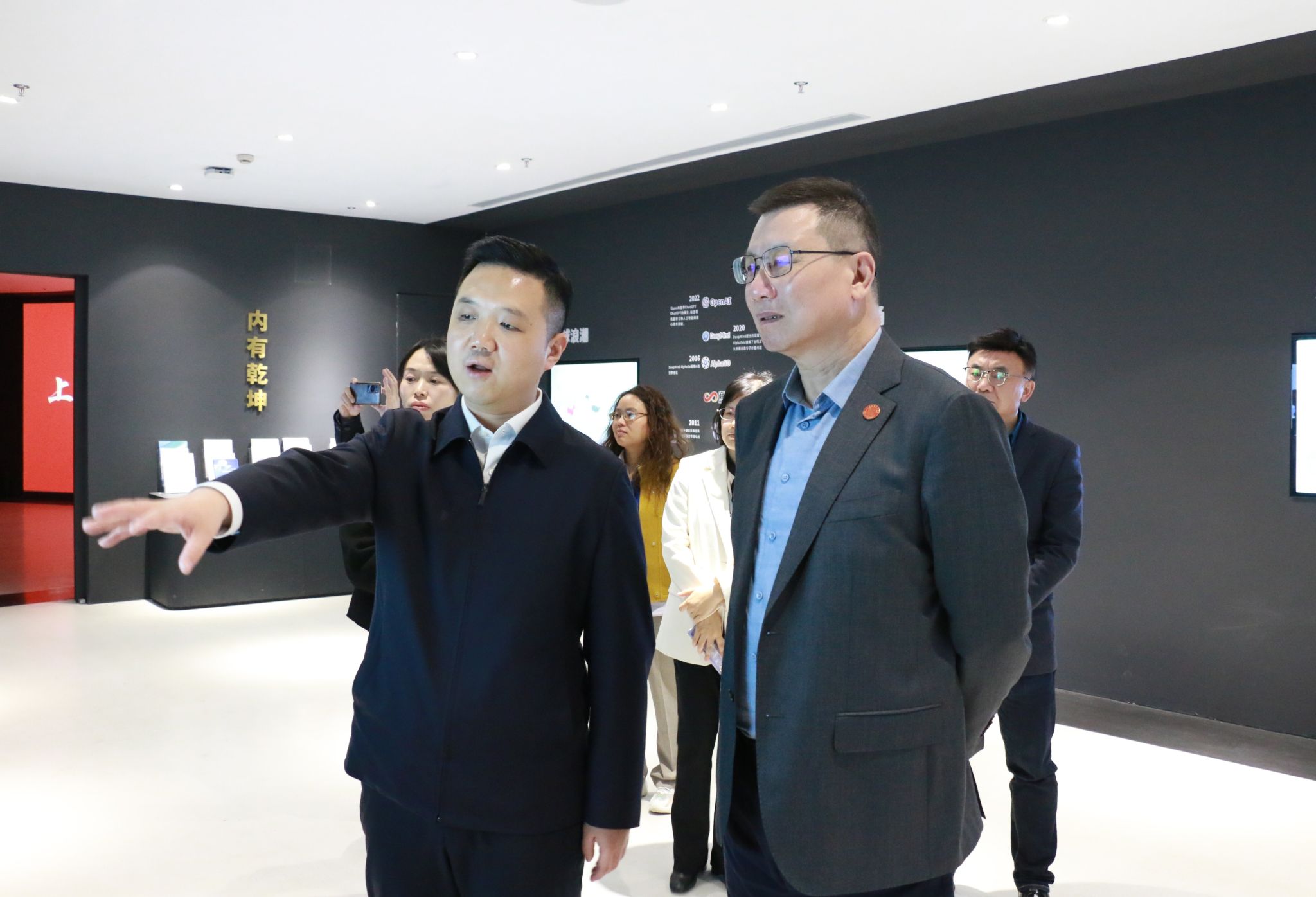 汪小帆一行参观研究院展厅,听取了研究院围绕“新一代高端专业智库、研发与产业转化创新平台、产融与生态创新平台”取得的建设成果介绍,了解研究院在AI产业转化、场景落地、生态建设、算力算网等方面开展的系列布局。