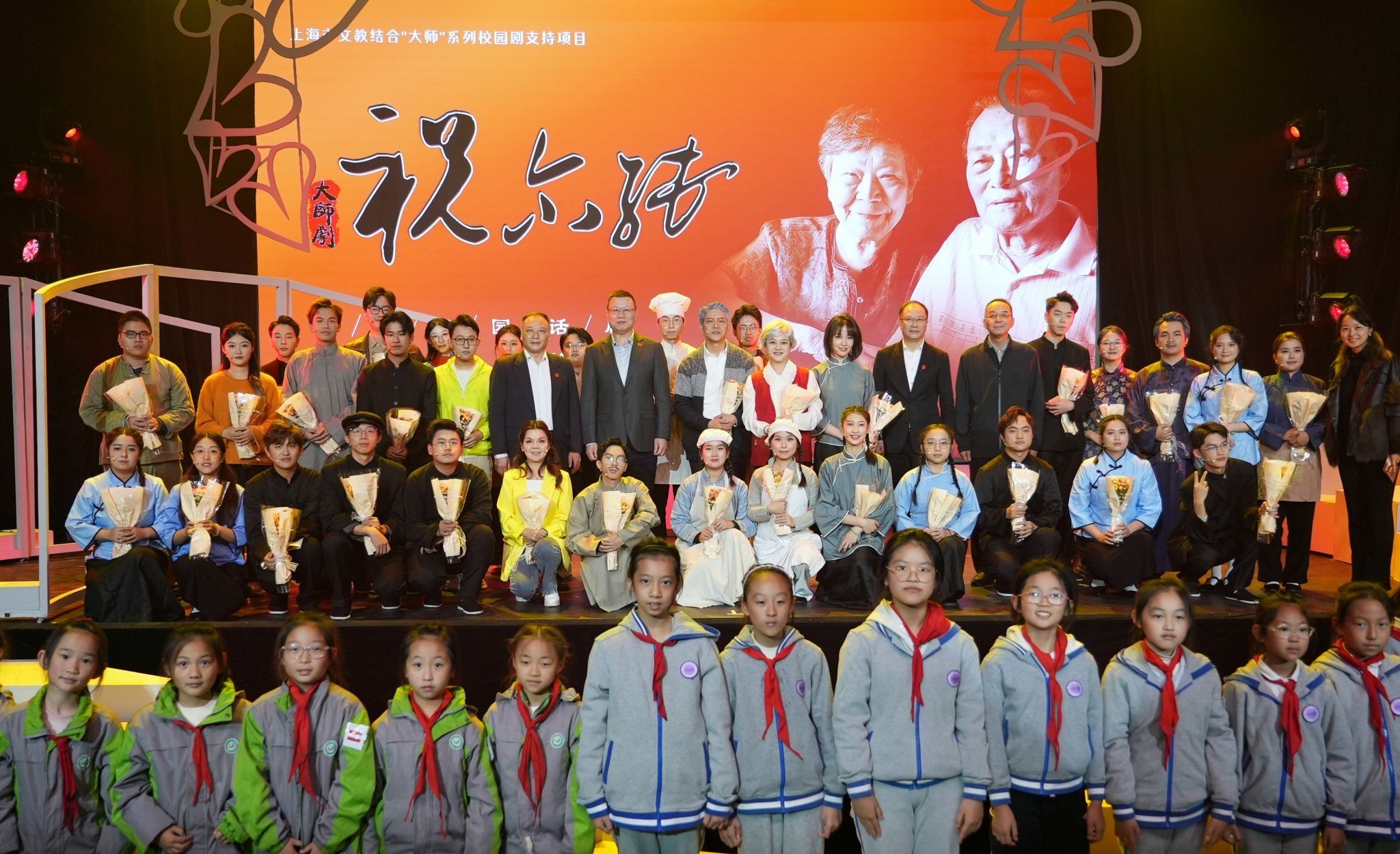 上海应用技术大学本科教育教学审核评估专家组组长、南京工业大学校长蒋军成,校党委书记郭庆松,校长汪小帆,校党委副书记、副校长王瑛,校党委副书记陈海瑾,副校长毛祥东,中共上海市教育卫生工作委员会宣传处副处长张晓飞,校党委常委、宣传部长杨明,校党委常委、组织部长王占勇和学校中层干部代表、“忠诠—尔纯”思想政治教育奖获奖代表、我校师生代表以及上海师范大学第四附属中学师生代表、奉贤区明德外语小学师生代表等一同观看了演出。
